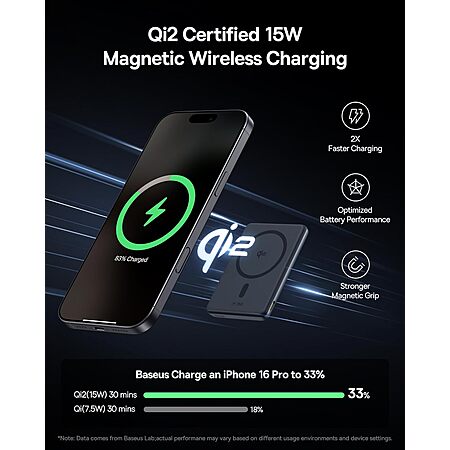 Baseus PicoGo 3.4" Ultra-Mini 5000mah MagSafe Qi2 Certified 15W Magnetic Wireless Power Bank $24.99 + Free Shipping
