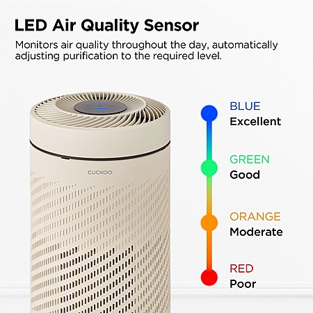 | Product Description: | Immerse Yourself in Fresh, Clean Air With CUCKOO's CAC-AB0610FI H13 True HEPA Air Purifier! Healthier, cleaner air is at your fingertips with CUCKOO's CAC-AB0610FI H13 True HEPA Air Purifier! The UV-C light filters 99.97% of fine odors, smoke, dust, and pet dander, with smart technology modes and a sleek design perfect for your living space. Key Features: 2-Stage Filtration: Goes through a pre-filter to detect larger contaminants like pet dander and dust, and then a true H13 HEPA filter for smaller dust particles. For Living Rooms, Bedrooms, & More: Perfect for mid-sized to large spaces, this air purifier is ideal for living rooms, bedrooms, kids' rooms, and kitchens up to 1,108 sq. ft. (1 ACH). Adjustable Fan Control: Between manual fan speeds or intuitive preset modes, such as Auto+ to automatically adjust fan speed and power off according to the current air quality, enjoy a completely customized purification experience. Sleep Mode: Ensures a restful night by reducing fan speed and dimming the lights, creating a calm and quiet ambiance. Smart Replacement Indicator: Automatically alerts exactly when your air purifier needs a filter replacement - every 4-12 months with regular use. Indulge in clean and healthy air with CUCKOO's CAC-AB0610FI H13 True HEPA Air Purifier! Smart Dust Sensor: Detects the pollution status of the air indoor in real time and adjusts fan speed accordingly For Medium to Large Sized Spaces: Ideal for home offices, small bedrooms, and kids' rooms, covering up to 1,108 square feet 4 Color LED Display: Detects cleanliness of indoor air through the dust sensor and displays on screen Sleep Mode: Enjoy a good night’s rest as sleep mode is designed slow down the fan speed and dim the lights for a calm and quiet ambiance Included Accessories: Comes with 1 True HEPA H13 filter and product manual |