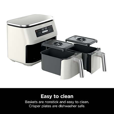 Model: Ninja Foodi 4-in-1 8 Qt Air Fryer, 2 Basket, XL Capacity, with DualZone Technology, Air Fry, Roast & More, DZ100WMWH Dove