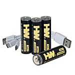 4-Pack HW USB-C Rechargeable 1.5V 1600mAh AA Lithium Batteries w/ Charger Cable (TH-ICR524C) on sale for $9.99 - $3 (30%) off when you apply promo code