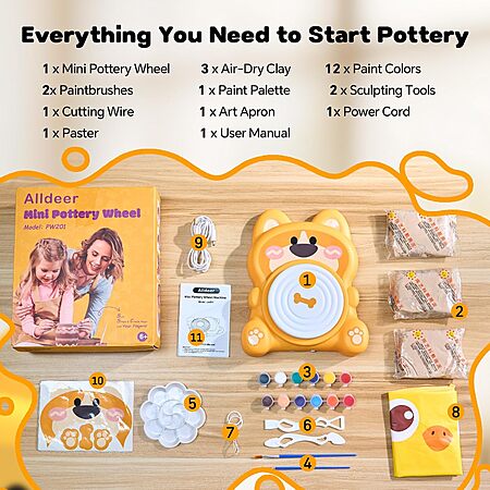 Alldeer Complete DIY Pottery Painting Kit w/ Pottery Wheel $13.73 + Free Shipping w/ Prime or on $35+