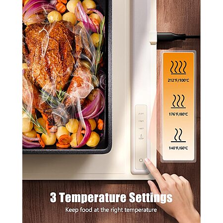 Features:- Three adjustable temperature settings: 140°F, 176°F, and 212°F