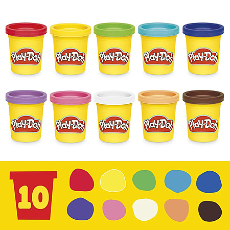 - 16 TOOLS AND 10 COLORS: Includes 2 ounce (56 gram) cans of modeling compound including brown for pretend pizza crusts (contains wheat) and Play-Doh tools like a pretend phone and cheese grater