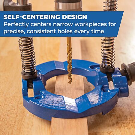 • Centering guide on underside of base allows for perfectly centered holes in narrow stock