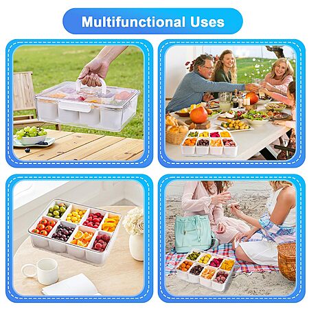 Gifhomfix Portable 8-Compartment Snackle Box Divided Container Tray w/ Resuable Ice Pack, Lid & Handle $9.99 + Free Shipping w/ Prime or on $35+