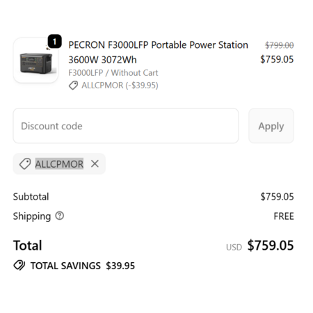 ALLCPMOR for an additional 5% off for a total of 759.05