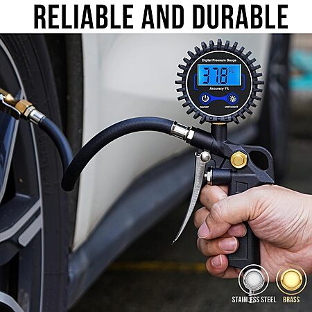 Model: DigitPro Digital Tire Pressure Gauge with Inflator, 3-250 PSI Air Compressor Accessories with Air Chuck Quick Connect Coupler, Car Attachments with Rubber Hose for Car, Truck, SUV, Cycle, RV