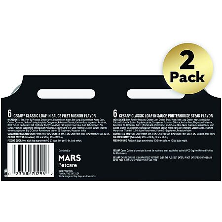Amazon has 24-Pack 3.5-Oz. Cesar Classic Wet Dog Food Variety Pack (Filet Mignon & Porterhouse Steak) on sale for $12.56 - $0.63 (5%) when you check out via Subscribe & Save = $11.93. Shipping is free with Prime or on $35+ orders.