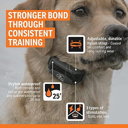 - Waterproof / submersible up to 25 feet, this rechargeable dog collar is built for field use with a durable strap and compact e-collar receiver