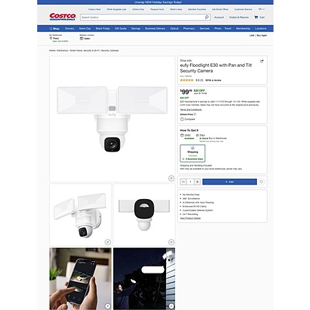Costco Members: eufy Floodlight E30 with Pan and Tilt Security Camera $99.99
