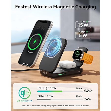 INIU Qi2 Certified MagSafe 3-in-1 Wireless Charging Station $16.39 + Free Shipping