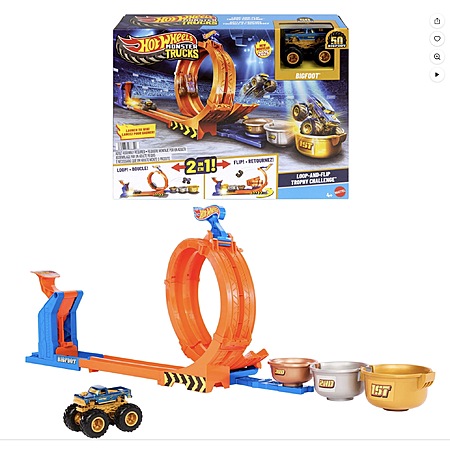 Hot Wheels Monster Trucks Loop-And-Flip Trophy Challenge Playset & Die-Cast Bigfoot Toy Truck $18.89 Free Shipping Walmart+