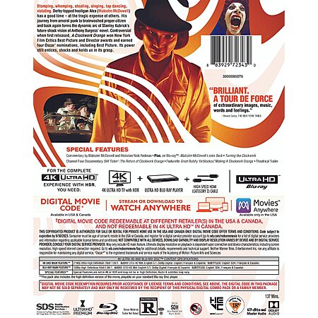 A Clockwork Orange (4K Ultra HD + Blu-ray) [4K UHD] Physical Disc $12.99 Free Shipping Amazon Prime
