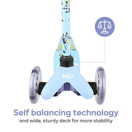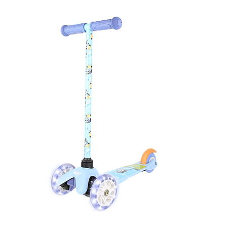 Bluey 3-Wheel Scooter — for kids 3+. Stable three wheels, tilt-and-turn steering, light-up wheels, rear brake, and fun Bluey design. Great for balance and outdoor play.