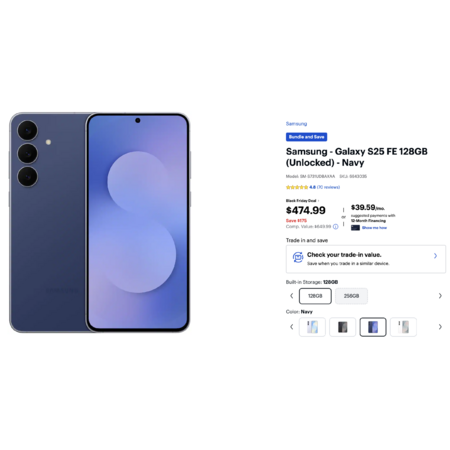 BB | Unlocked Galaxy s25 FE 128GB - $375 , 256GB - $434 | VZ or ATT postpaid account | Add a line | Phone is unlocked out of the box $374