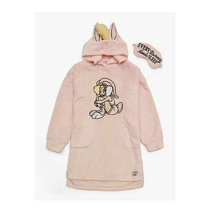 Looney Tunes X Justice Girls Long Sleeve Sleep Hoodie and Eyemask, 2-Piece (Bugs, Lola, Taz) - $13