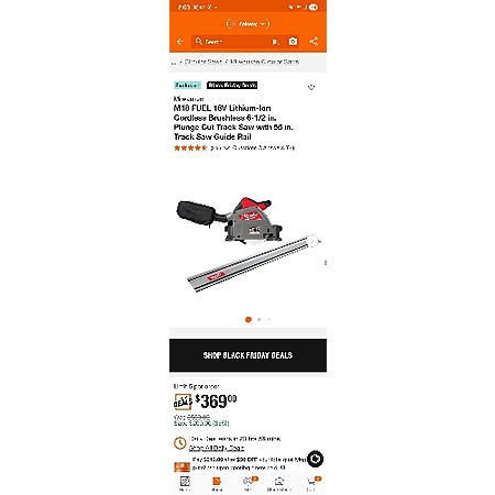 Model: Milwaukee M18 FUEL 18V Lithium-Ion Cordless Brushless 6-1/2 in. Plunge Cut Track Saw with 55 in. Track Saw Guide Rail