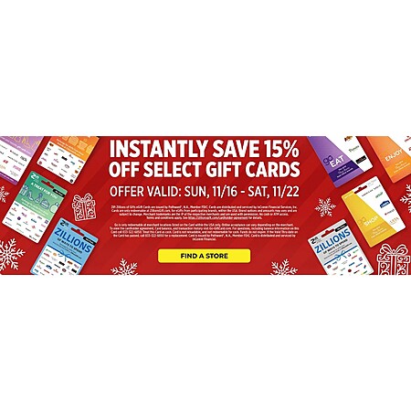 Dollar General: 15% instant savings on Select Mulit-Brand Gift Cards: Zift Zillions 11/16-11/22