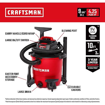 [AC] $59.99: 9-Gallon CRAFTSMAN 4.25 Peak HP Wet Dry Vac (CMXEVBE17590) at Amazon