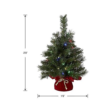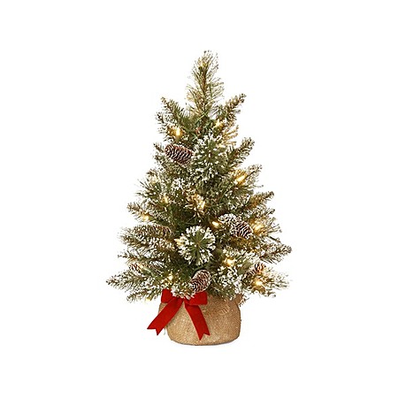 2' National Tree Company Artificial Pre-Lit Tabletop Tree: Majestic Fir w/ Cloth Bag Base $15.99, Glittery Bristle Pine w/ Cloth Bag Base $16.99 + Free Shipping w/ Prime