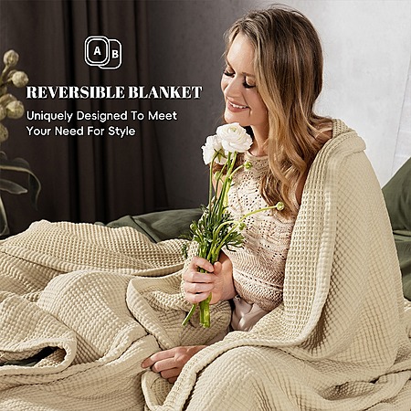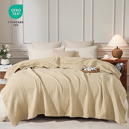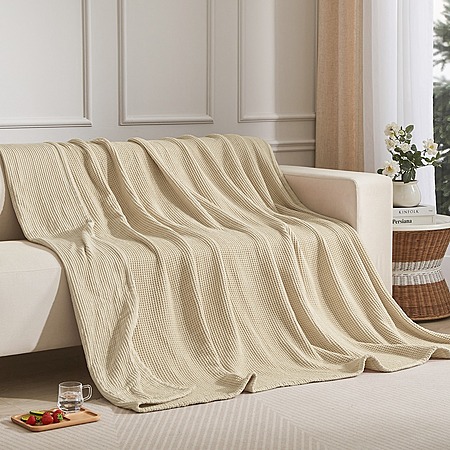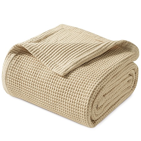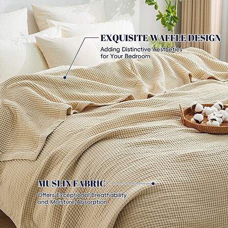 PHF 100% Cotton Waffle & Muslin 50"x70"Throw XL Blanket (French Oak) $19 & More + FS w/ Prime or orders $35+