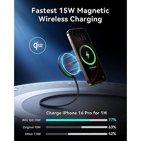 INIU Magnetic Wireless Charger, Qi2 Certified 15W Fast Mag-Safe $11.22