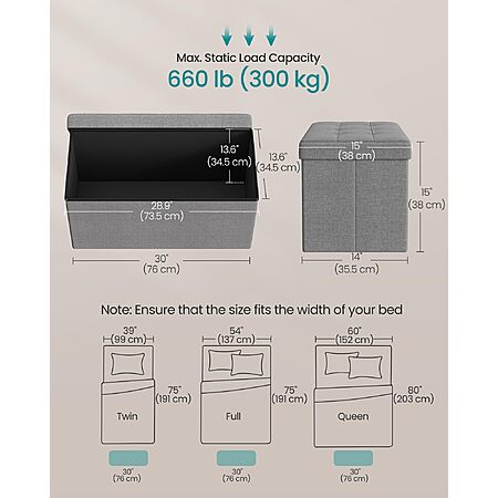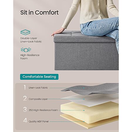 Model: SONGMICS MAZIE Collection - 30 Inches Folding Storage Ottoman Bench, Ottoman Foot Rest, End of Bed Bench, Storage Chest, Load 660 lb, for Living Room, Bedroom, Entryway, Light Gray ULSF47G
