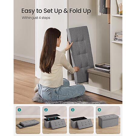 Amazon[amazon.com] has 30" Songmics Mazie Collection Folding Storage Ottoman Bench (Light Gray, 15"D x 30"W x 15"H)on sale for $23.34. Shipping is free w/ Prime or on orders $35+.