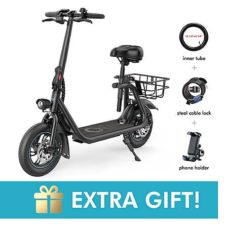 | Product Description: | MIHOVER 450W Electric Scooter with Seat! !!(Buy now and you will get free phone holder & passward steel cable lock & inner tube) The MIHOVER Adult Commuter Electric Scooter is designed to provide a comfortable and convenient mode of transportation for adults. With its powerful 450W motor, this scooter offers a smooth and efficient ride. The scooter comes equipped with a spacious 9.5 inch wide foot deck, ensuring that you will have plenty of room to stand and ride comfortably. The scooter features a combination of Dual front and rear disc brakes, providing effective stopping power in any situation. The adjustable seat height and comfortable seat ensure that you can ride for longer periods without discomfort. The LED digital display provides clear and easy-to-read information about your speed and battery life. The scooter also features a front headlight and rear brake light, ensuring that you can safely ride at any time of day. With a top speed of 16mph and a range of up to 21 miles, this scooter is perfect for daily commutes and short trips around town. The built-in basket provides convenient storage for small items or groceries, making it easy to take everything you need with you. The scooter is easy to fold for storage, making it perfect for anyone who needs a portable and convenient mode of transportation. The MIHOVER Adult Commuter Electric Scooter is an excellent choice for anyone looking for a reliable transportation! Rear Basket: Yes Motor: 450W Battery: 36V-7.5Ah Max Range: 21Miles Top Speed: 16MPH Brake: Dual Front and Rear Disc Brakes Head&Tail Light Max Load: 265LBS Net Weight: 35LBS Charging Time: 5H Fits for Height: 5′1″to 6′1″ Fits for Ages: 12+ years Recommended tire pressure:2.5bar Based on the feedback from thousands of consumers, we made a brand-new upgrade to our product in 2025! 2025 Upgraded Electric Scooter: Solved Past Pain Points! 🛞Tire Upgrade: New thickened anti-puncture tires (from trusted suppliers) + 1 FREE inner tube included—no more flat tire worries. 📦Packaging Upgrade: Reinforced box prevents switch damage during shipping—avoids "dead battery from accidental power-on" issues. ⚙️Motor Upgrade: Enhanced motor for smoother rides & longer lifespan. We listened to your feedback and improved every detail. Enjoy a more reliable, safer ride now! 【Upgraded Value Pack】:Purchase now and we will give you multiple exquisite gifts! A phone holder, a password steel cable lock, and an extra inner tube. No need to purchase any accessories separately! An offer you absolutely can't miss! 【Comfortable & Long-ResThird Party Accreditation istance Riding】:The MIHOVER electric scooter features a seat designed for a comfortable and fatigue-reducing ride, enabling longer journeys with ease. 【Powerful Performance】:Equipped with a 450W motor and a 36V/7.5AH high-capacity battery, it reaches speeds up to 16 mph and offers a range of up to 21 miles on a single charge. 【Safe & Stable Control】:With 12-inch tires and dual front and rear disc brakes, the scooter ensures excellent stability, control, and quick, safe stopping power. 【Durable & Foldable & Stylish Design】:Its all-metal body is both sturdy and foldable for convenient storage and transport, supporting up to 265 lbs. The blue rims add a modern unisex style, suitable for riders of all ages. Note: Slight appearance variations may occur due to production batches. No key included. |