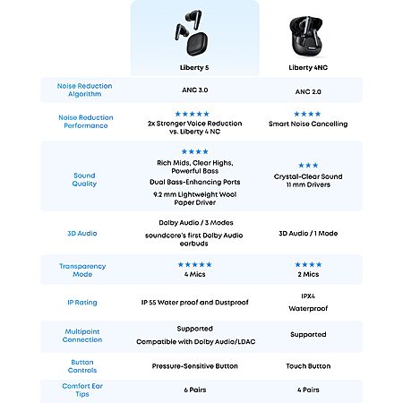 2x Stronger Voice Reduction vs Liberty 4 NC: Upgraded ANC 3.0 technology and a redesigned acoustic cavity target and reduce human voices 2× more effectively than Liberty 4 NC, helping you stay focused and enjoy quieter commutes on trains or subways.