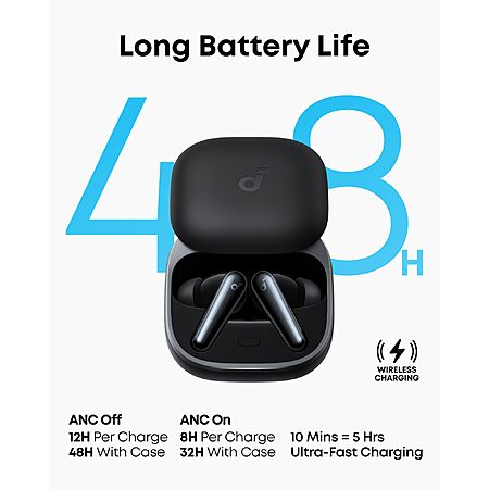 Charges Fast, Lasts Long: Up to 12 hours of playback on a single charge and up to 48 hours with the case in normal mode. With ANC on, get 8 hours per charge and a total of 32 hours. A quick 10-minute charge gives you 5 hours of playtime.