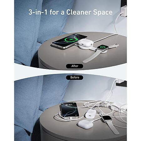 Model: Anker MagSafe Compatible MagGo UFO 3-in-1 Charger, iPhone 16 Wireless Charger Station, Qi2 Certified 15W, Foldable Travel Charging Pad, for iPhone 15/14/13/12, AirPods, Apple Watch (Not a Power Bank)