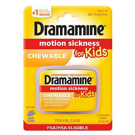 8-Count Dramamine Motion Sickness Relief for Kids (Chewable Grape) $1.78 + Free Shipping w/ Prime or on $35+