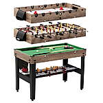 | Product Description: | The MD Sports 48-inch 3 in 1 Combo Game Table includes billiards, air-powered hockey, and foosball. This three-in-one game design features reinforced legs for additional durability. This table easily converts between games, and all the accessories needed to play are included. To play air-powered hockey, remove the steel rods with a quick-release design. Place the foosball surface on the billiard tabletop rails and lock the surfaces together to play foosball. The air-powered hockey game is fast and competitive. The Foosball table features steel rods, a ball return, and a manual scoring system. The billiard table features a real felt playfield and bumpers. The MD Sports 48-inch 3 in 1 Combo Game Table is the top-selling item every year, don't miss out! Versatile Gaming Options: Easily converts between air hockey, billiards, and foosball, providing multiple entertainment choices in one compact table Air Hockey Setup: Play air-powered hockey with fast-paced action. The steel rods can be removed using a quick-release design for easy conversion Foosball Setup: Convert to foosball by placing the foosball surface on the billiard tabletop rails and locking them together. Features steel rods, a ball return, and a manual scoring system for an authentic experience Adjustable Legs: Features 1.5-inch leg levelers for easy assembly and table leveling, ensuring a stable gaming surface Included Accessories: Comes with 2 pushers, 2 pucks, 2 billiard cues, 1 billiard ball set, 1 triangle, 2 chalks, 1 brush, and 2 soccer balls, so you are ready to play right away Product Dimensions: Measures 48.5 x 22.75 x 34.5 inches (L x W x H) for a convenient and space-efficient design Brand: MD Sports |