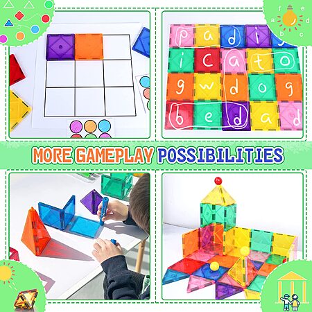 • 【GROWS UP WITH KIDS & OPEN-ENDED PLAY】 We can play all kinds of games with magnetic blocks, puzzles, shadow games, find words, dollhouses, etc. STEM-approved magnetic blocks inspire hours of instruction-free playtime while helping children develop math, science, spatial, and tactile skills