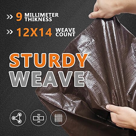 • 9 Mil Thick & Finished Size: :The Chaojin Heavy Duty Tarp is made of premium polyethylene material with a thickness of 9 mils. Tarps finish size 8X10,10x12,12X16,12X20,16X24,20X30,30X50 feet, more sizes available. These silver-brown/green heavy duty tarps are designed to withstand tough conditions, protecting your valuable belongings, equipment, and outdoor spaces from rain, sun, wind.