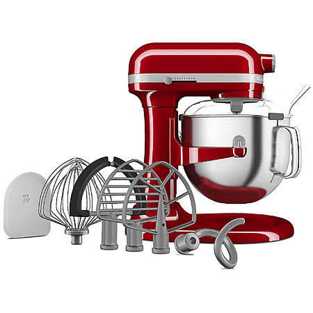 | Product Description: | Take it all on! The KitchenAid Bowl-Lift stand mixer -- with a generous 7-qt capacity -- is ready to beat, mix, knead, shred, and even fold its way through baking-filled holidays and year-round recipes with professional performance. The sturdy, three-point locking bowl and 11 speed options (including half speed for delicate ingredients) offer the power and control to cook for a crowd. This kitchen hero tackles large batches -- up to 13 dozen of your signature cookies -- and dense ingredients like 7.5 lbs of mashed potatoes and 8.5 lbs of bread. (Holiday cookie exchange and Thanksgiving sides, handled!).