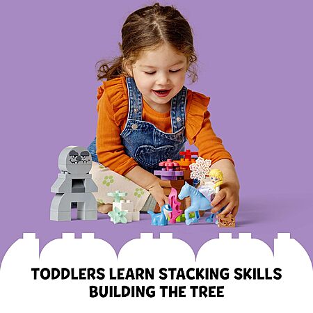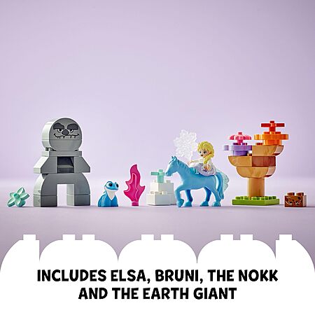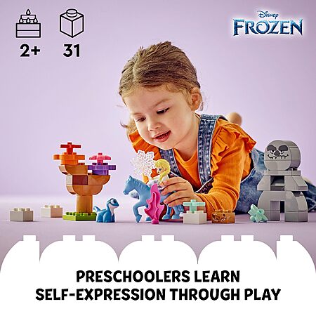 - Buildable fantasy toy for little Disney Frozen 2 fans – Whisk toddlers away on a Disney Frozen 2 adventure with this LEGO DUPLO Disney Elsa & Bruni in the Enchanted Forest building toy Disney Frozen 2 building toy for 2-year-olds and up – Includes a buildable forest scene, an Elsa mini-doll, Bruni the salamander and the Nokk water horse figures and an Earth Giant figure LEGO DUPLO role-play building toy for preschool kids – Toddlers develop self-expression by imagining they're Elsa, Bruni or the Nokk water horse traveling through the forest to befriend the Earth Giant Includes accessories recognizable from the movie – Comes with a snow crystal element, Elsa mini-doll, Bruni's pink flame element and a buildable snow scene for creative free play Great birthday gift for toddlers – Treat a toddler who's on their best behavior with this buildable fantasy toy, a fun everyday or special-occasion gift for 2-year-old fans of Disney's Frozen 2 movie A safe play experience – The bricks and pieces of LEGO DUPLO Disney sets are rigorously tested to ensure every building toy meets the highest global safety and quality standards Learning through play – LEGO DUPLO sets engage preschoolers and develop their fine motor skills and self-expression, while parents share in their precious developmental milestones