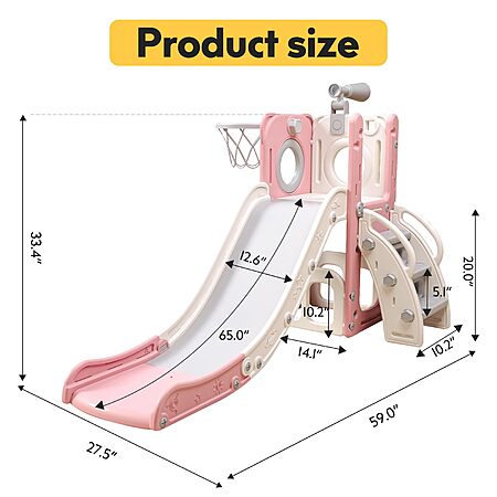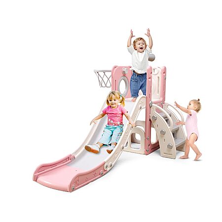 Amazon[amazon.com] has 6-in-1 Toddler Playset w/ Slide, Basketball Hoop, Telescope & Storage Space for Indoor or Outdoor (Pink White) for $59.99. Shipping is free.
