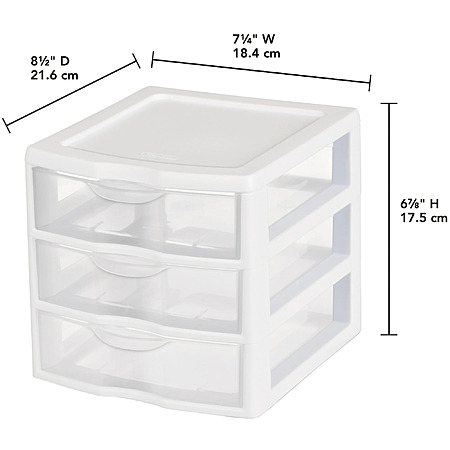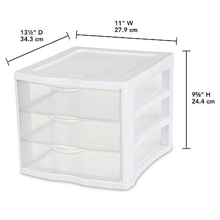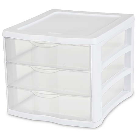 Sterilite 3 Drawer Storage Units, Clear Plastic Countertop or Desktop Drawers, White $10.98