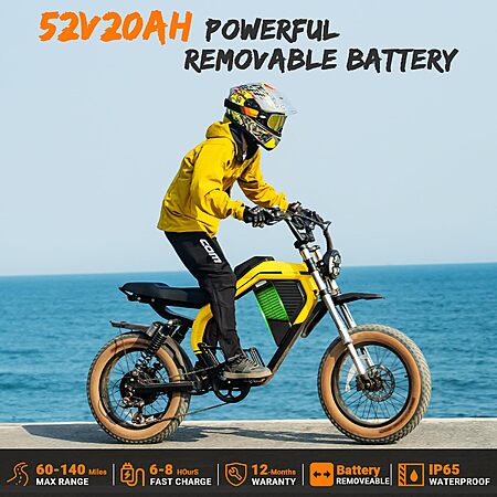 Luckeep M5 MAX Electric Bike Bike 1500W Peak 37.5 MPH, 52V/20AH/40AH Dual Battery, 80/160 Miles Range 20" Tires $889
