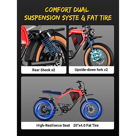 Luckeep M5/MAX Electric Bike for Adults/Teen,2000W/3000W Peak Dual Motor,37.5/32 MPH, 48V/52V, 20AH-40AH Dual Battery Ebike,80/160 Miles 20" Fat Tire Electric Dirt bike,Electric Moped Ebike for Adults