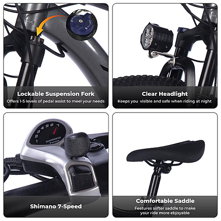 Lelekuai Electric Mountain Bike, 36V 500W Brushless motor, 23MPH top speed, 10.4Ah battery ebike $212