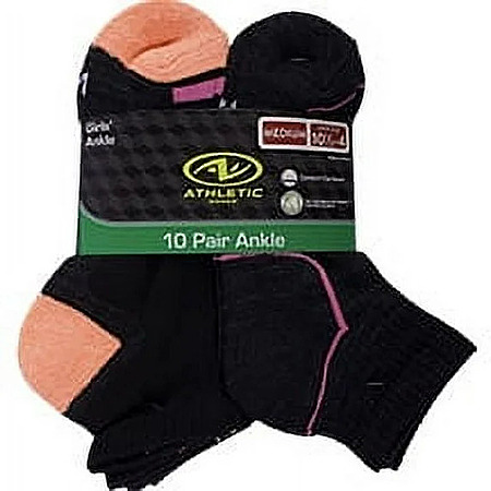 Athletic Works Girls Ankle Socks, 10 Pack, Size M at Walmart $4.49