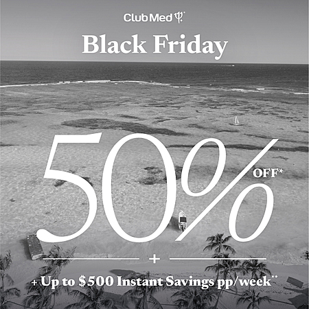 Club Med all-inclusive vacations is running their Black Friday (including Cyber Monday) sale. Get an additional instant savings of up to $500 per week and based on a double occupancy in a Deluxe or Suite category for specific dates. Kids ages 4 and under stay for free and if you are travelling solo, there is no single supplement. See participating locations below.