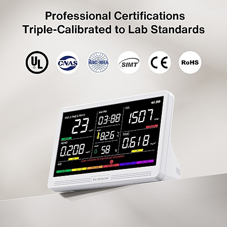 bonoch 16-in-1 Air Quality Monitor Indoor w/ 7-inch Display, 9 AQI + 7 Alerts $65 + Free Shipping