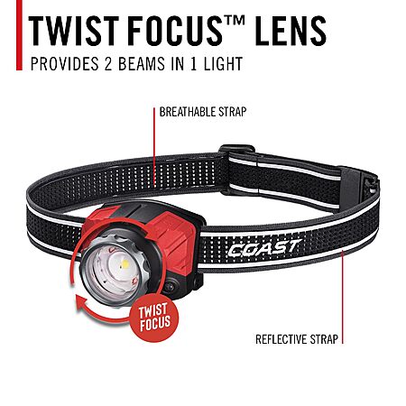 Coast FL85R 1000 Lumen Tri-Color (White/Red/Green) Focusing Rechargeable LED Headlamp on sale for $34.96 - $10 off w/ clipped coupon on page =
