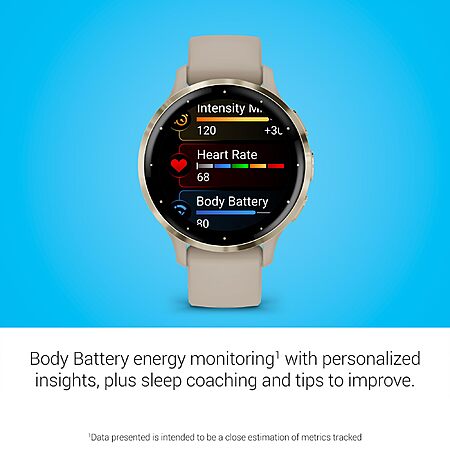 Garmin Venu 3S Soft Gold Stainless Steel Bezel 1.2-Inch AMOLED Touchscreen Display Smart Watch with 41mm French Gray Case and Silicone Band $349