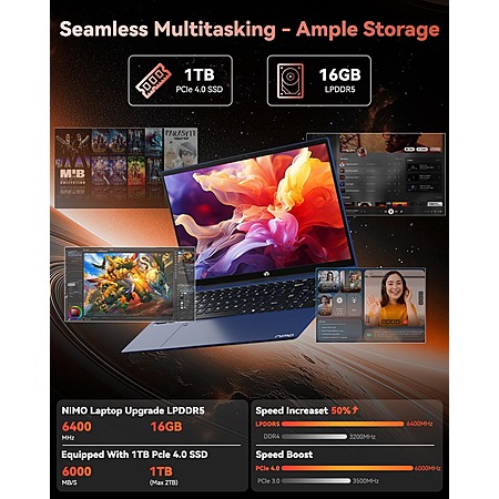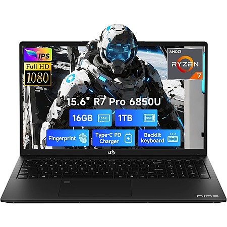 NIMO 15.6" Laptop Ryzen 7 Pro 6850U, 16GB LPDDR5 RAM, 1TB SSD, Radeon 680M GPU $450.30 + Free Shipping
