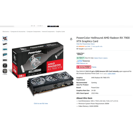 PowerColor Hellhound AMD Radeon RX 7900 XTX Graphics Card. $688.55 when you apply the coupon.